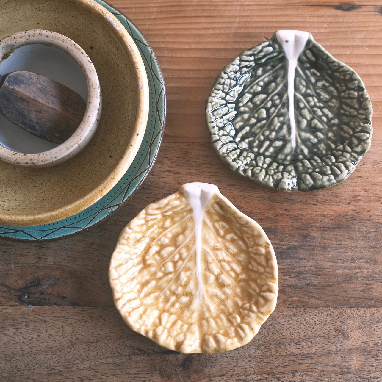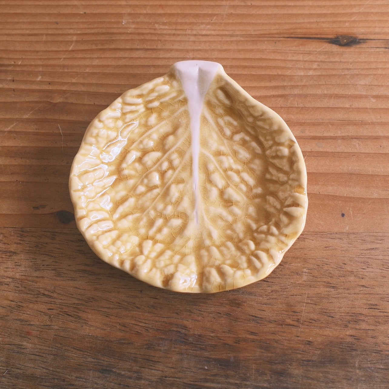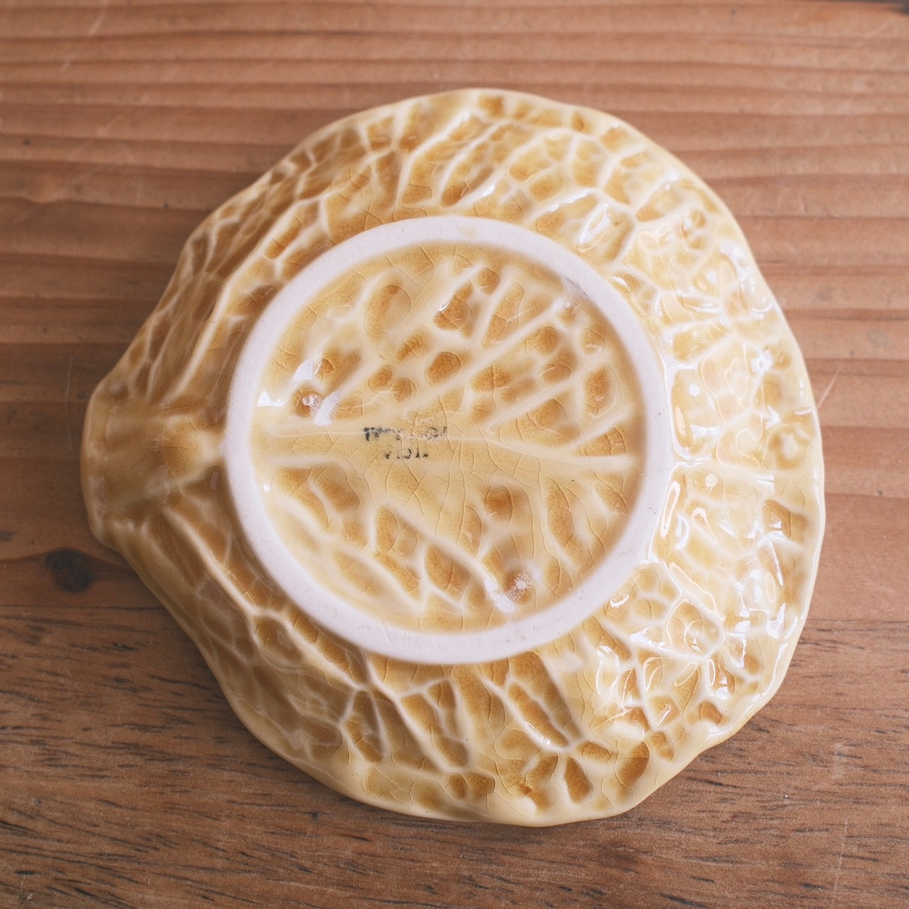 Ett sött litet gult fat formad som ett kålblad. Signerad Secla Portugal.