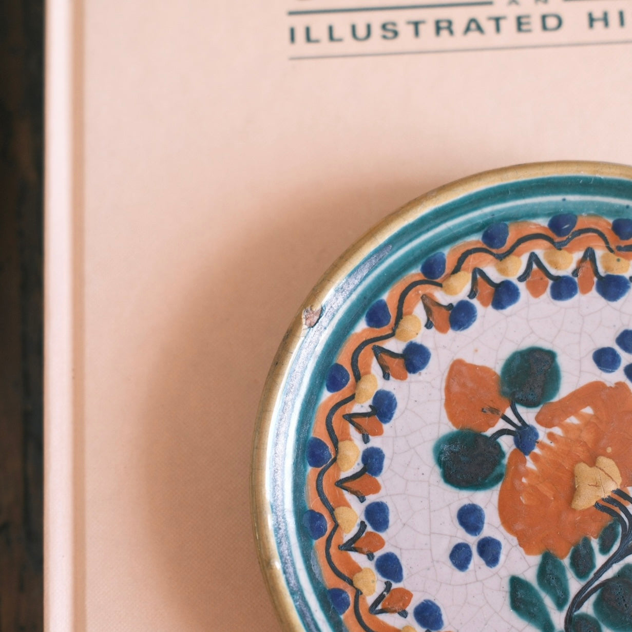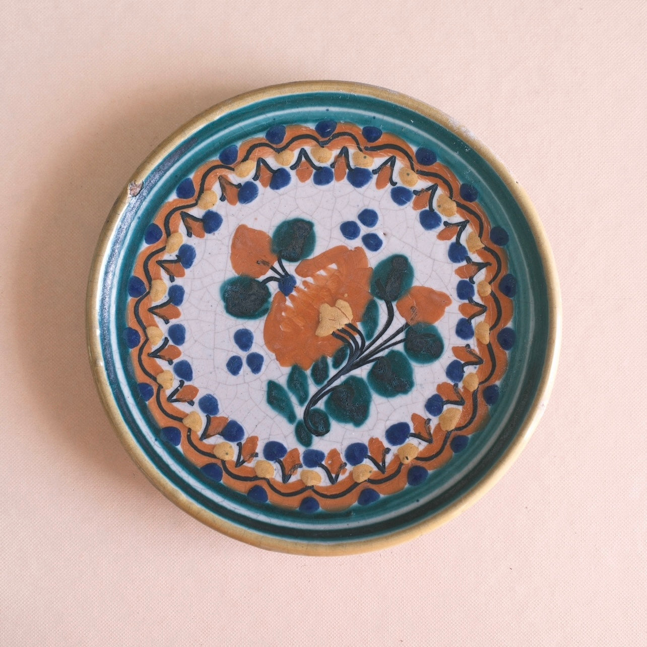 Ett litet fat med färgglada handmålade blommor från Mexiko. Fatet har en liten skada men de ger bara mer charm och tyder på fatets ålder.
