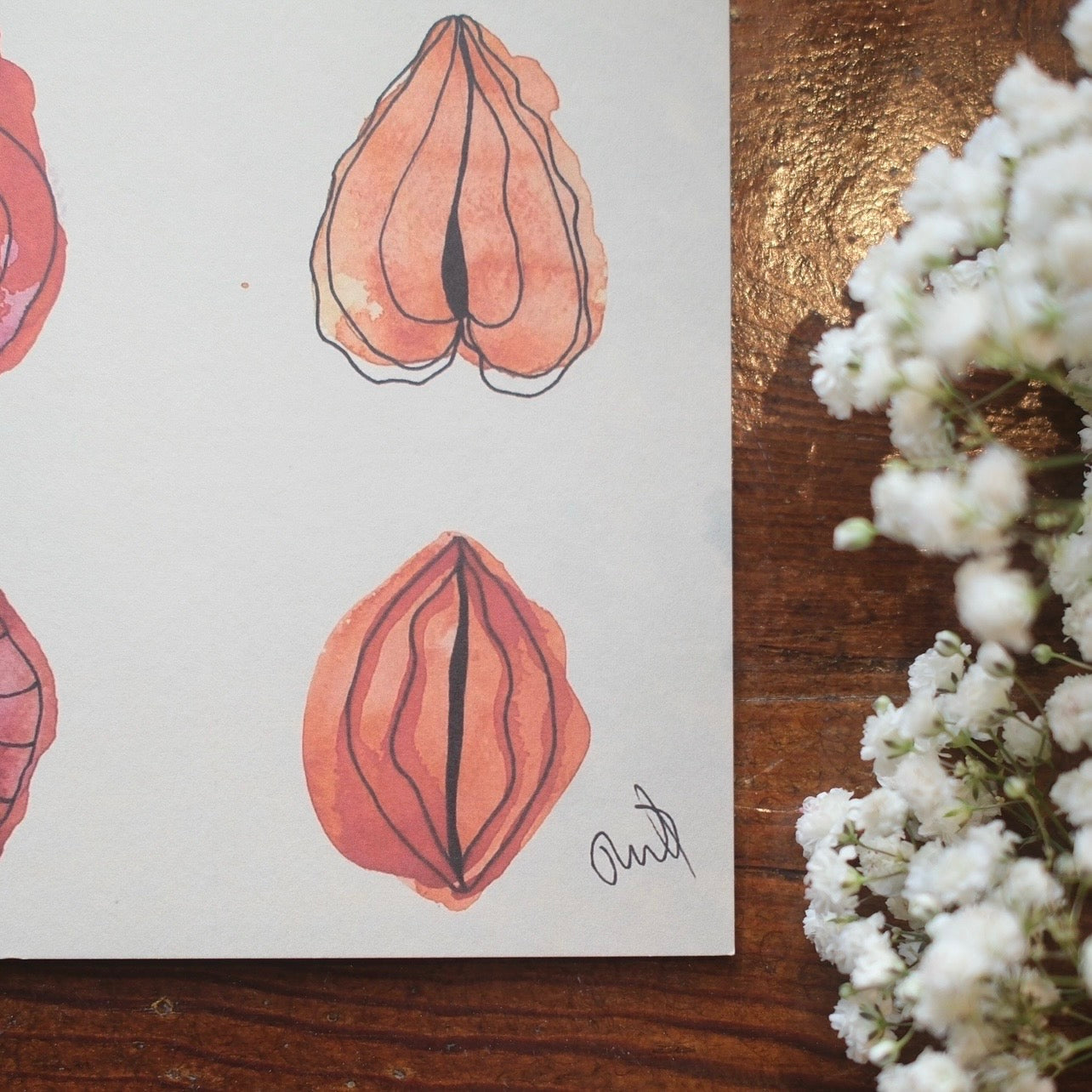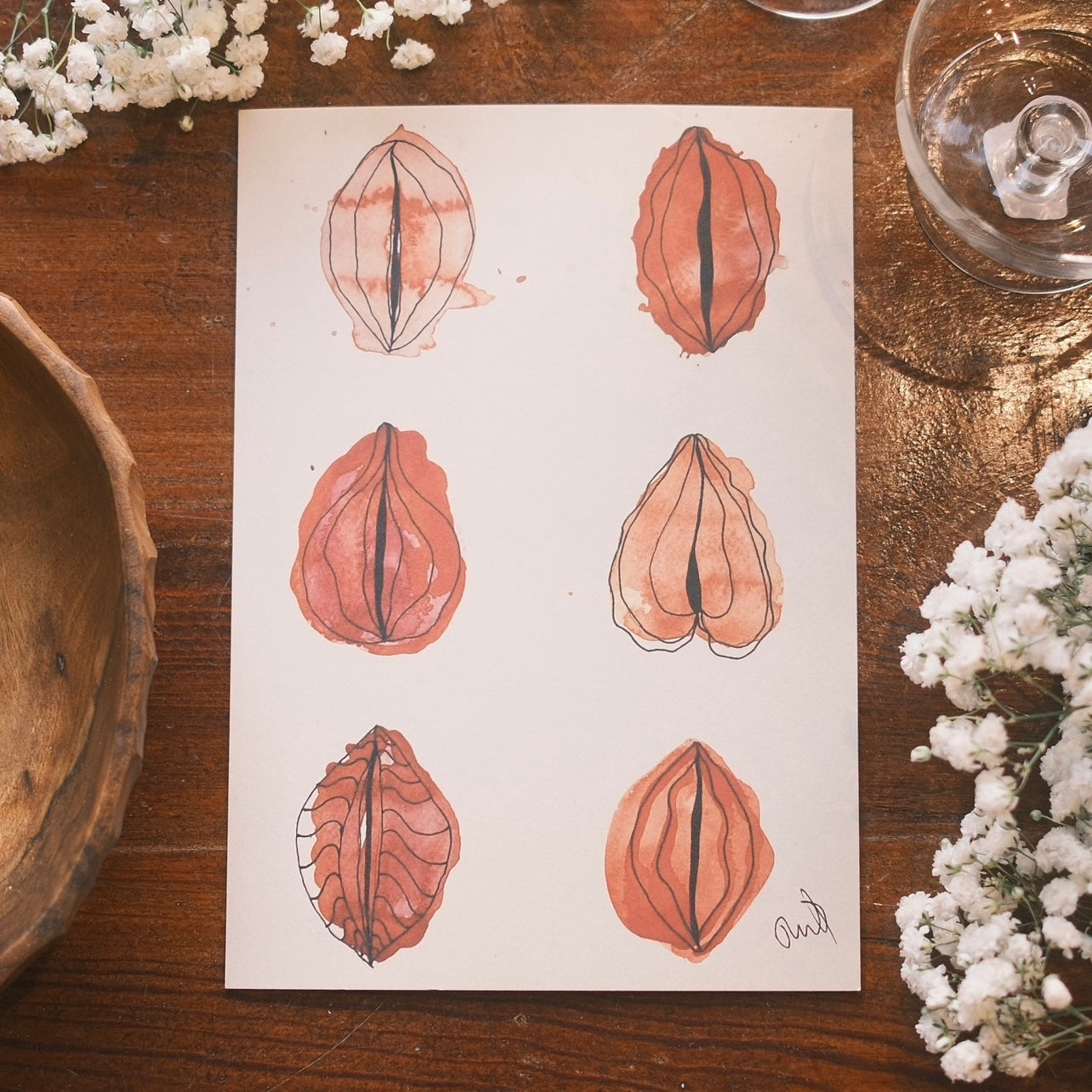 Tuttverkets Poster - ”Snippor” är målade med pastelliga dova röda toner. En hyllning till kvinnan och att vi alla ser olika ut och är lika vackra.