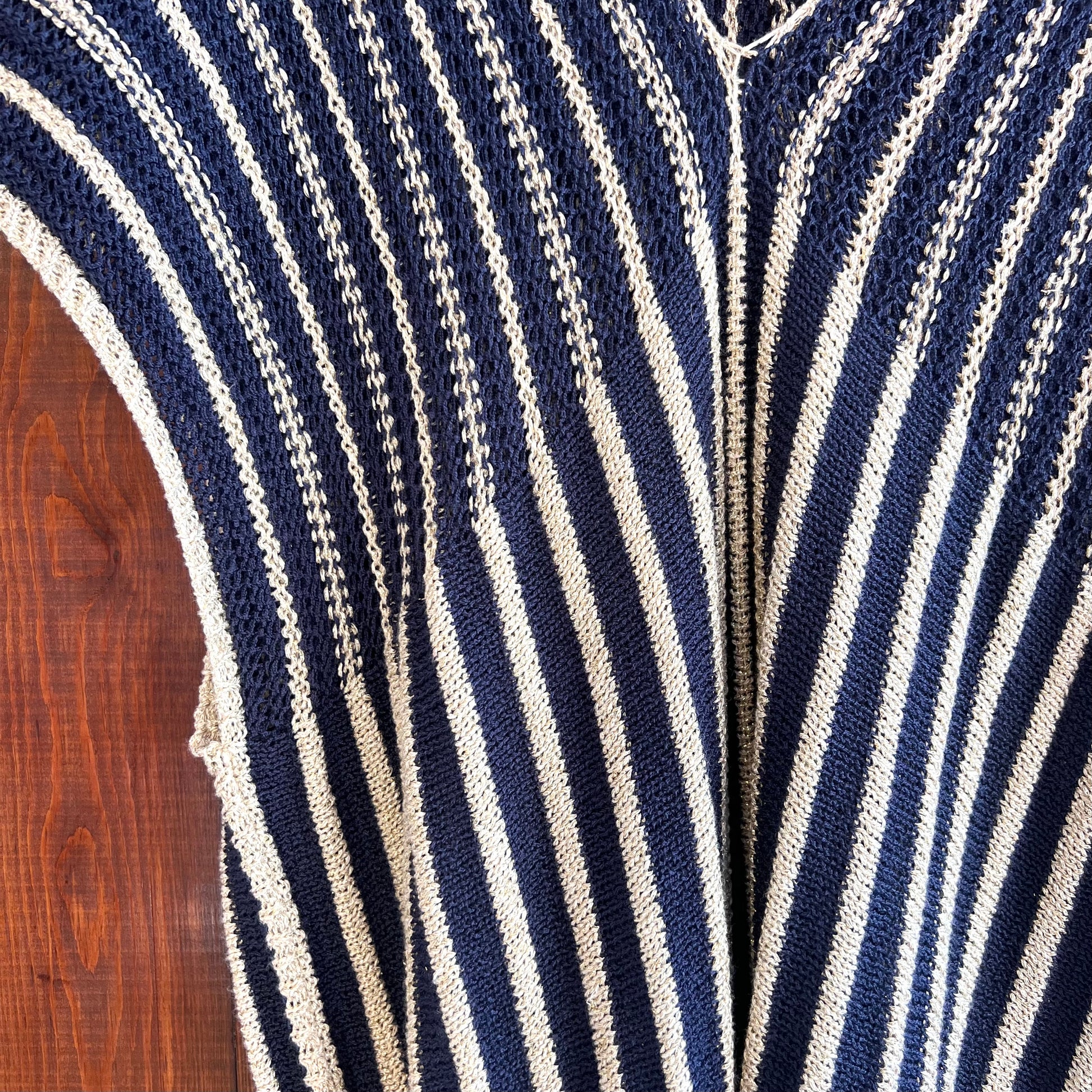 Blå/Vit stickad kaftan i mjukt och skönt material. Ledig passform som sitter fint och passar de flesta storlekar. Perfekt att bära både hemma, på stranden eller över en enkel outfit.Ett fint secondhand fynd med härlig färg och tidlös stil. Ett enkelt och unikt tillskott till garderoben.