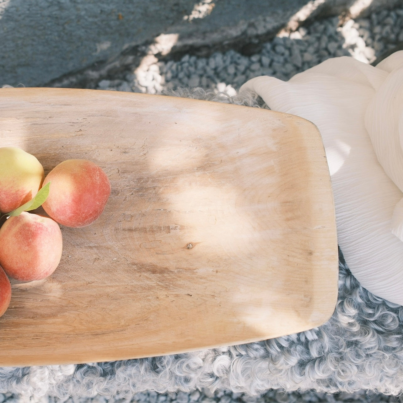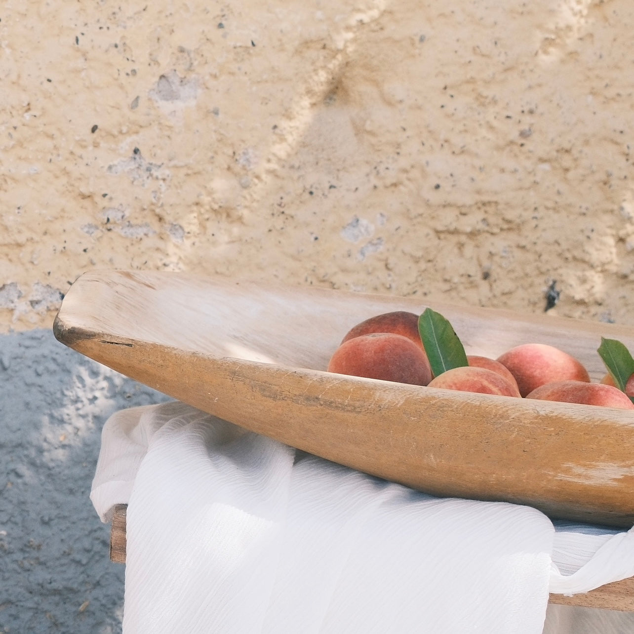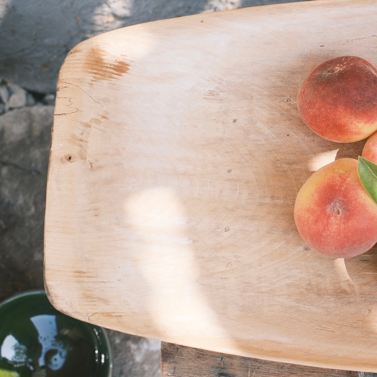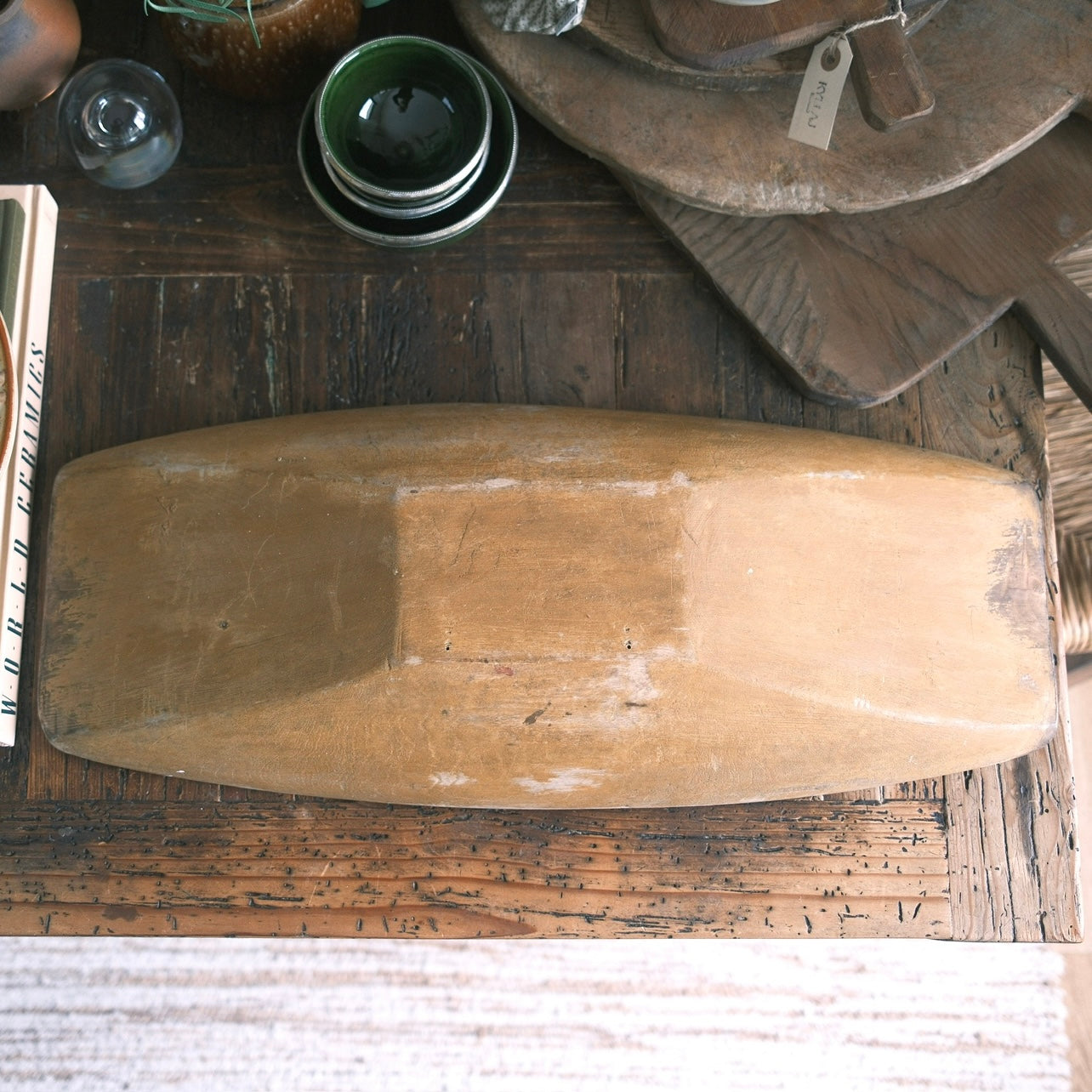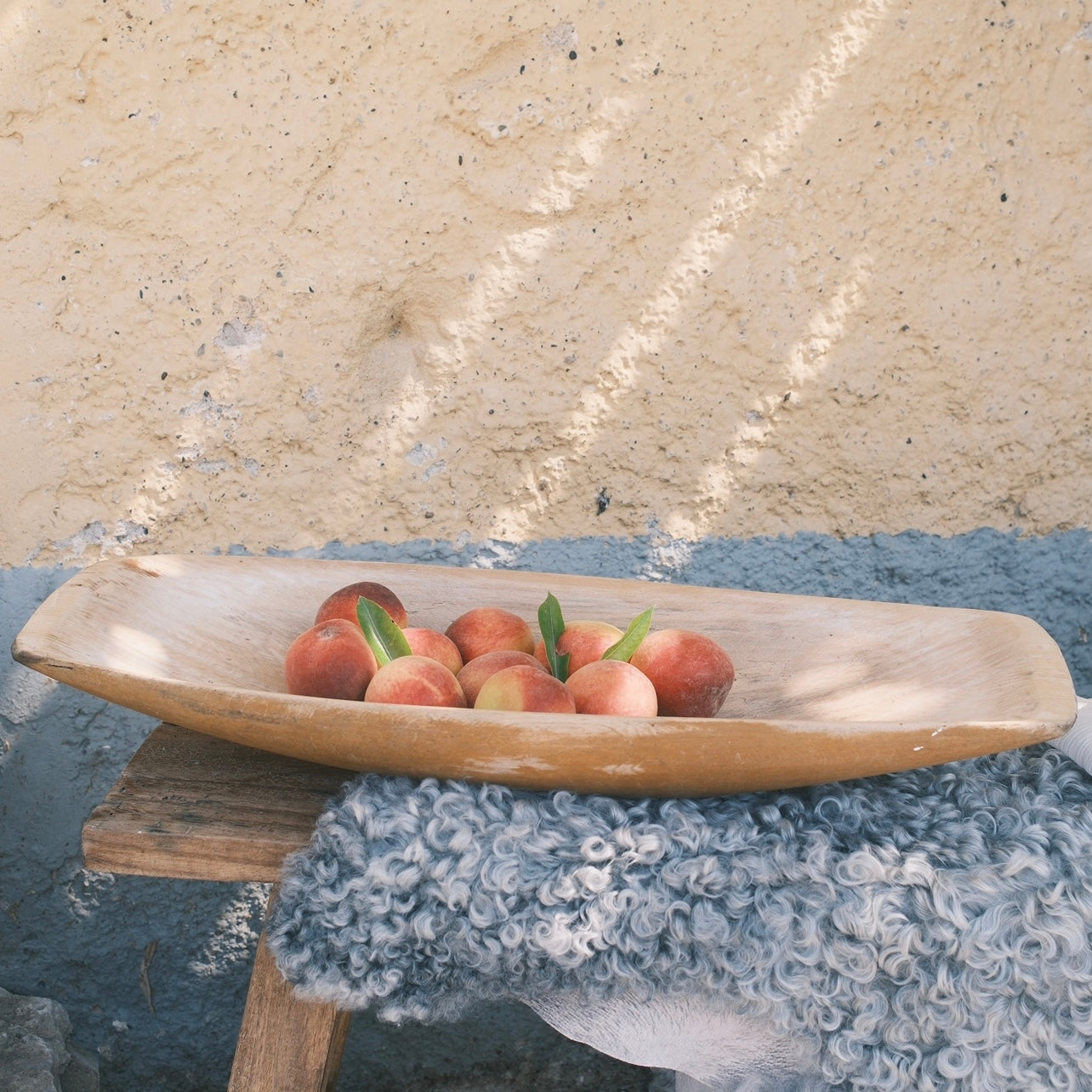 Ett stort ljust trä tråg till dekoration eller som fruktskål.
