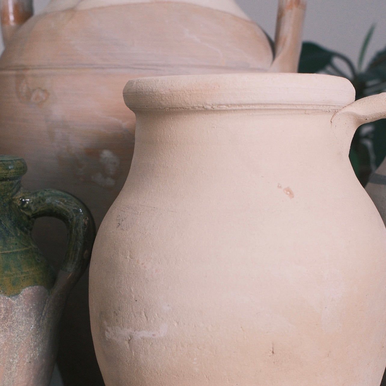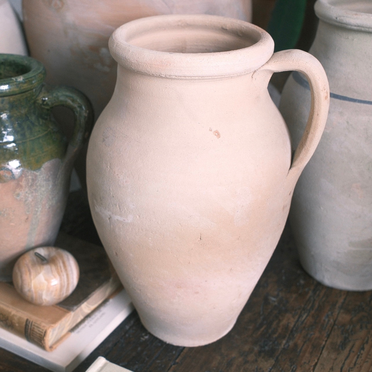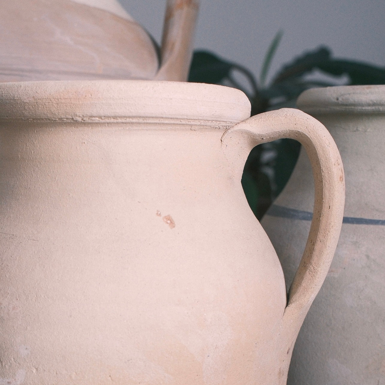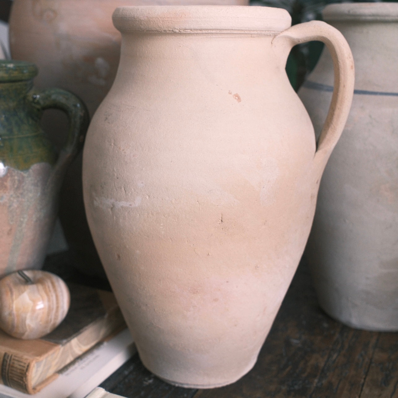 Sandfärgad urna med ett handtag i en sån där perfekt mellan storlek inte för liten inte för stor. Alla urnor är unika och kan skifta i färg.